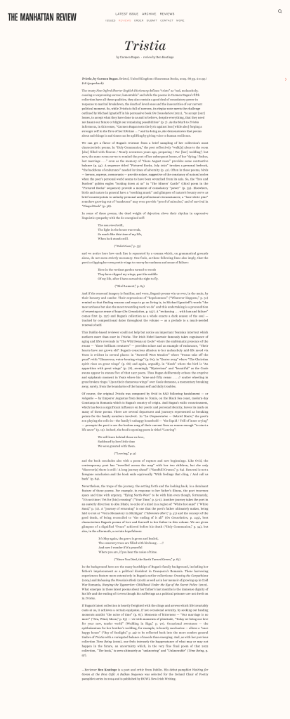 TRISTIA, poems Posted on February 12, 2026 by carmenbugan https://themanhattanreview.com/reviews/tristia